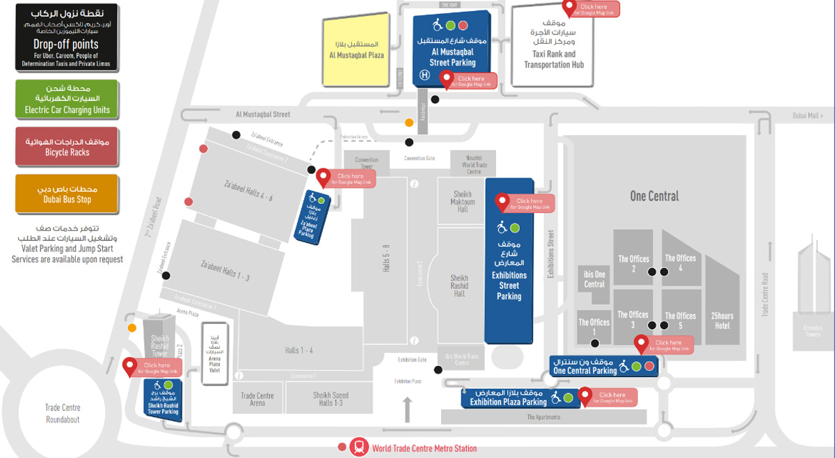 - Exhibition Plaza Parking – Sheikh Saeed Halls, Trade Centre Arena